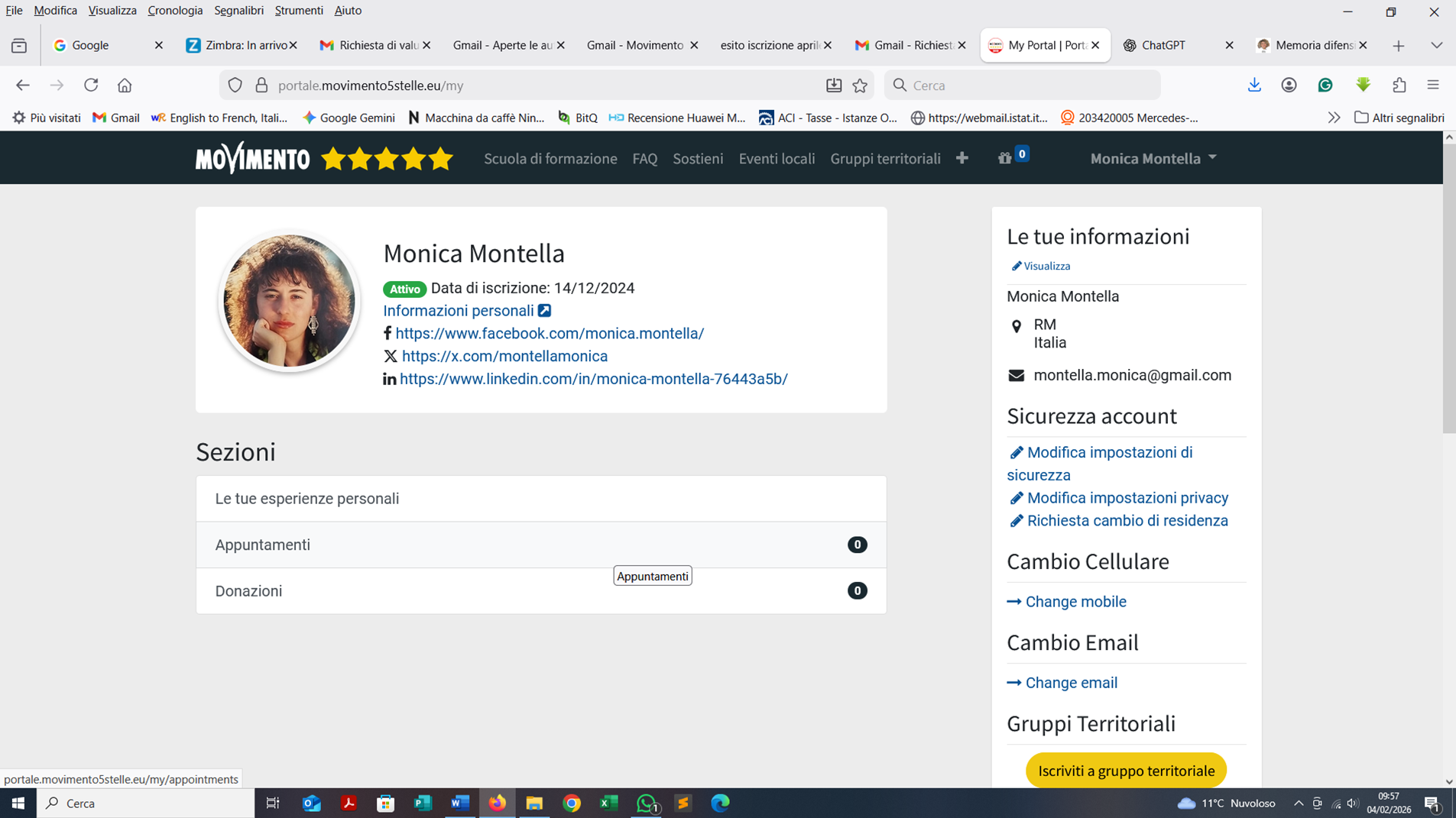 Dopo quanto accaduto, mi sono nuovamente iscritta al Movimento 5 Stelle il 14 dicembre 2024. L’ho fatto per coerenza e rispetto verso i cittadini e verso i valori che ho sempre difeso. Per me la legalità non si archivia: si pratica.